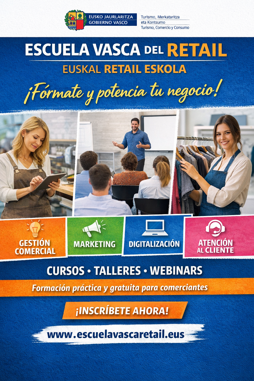 El Gobierno Vasco, a través del Departamento de Turismo, Comercio y Consumo, pone a disposición del sector comercial la Escuela Vasca del Retail, una iniciativa dirigida a mejorar la