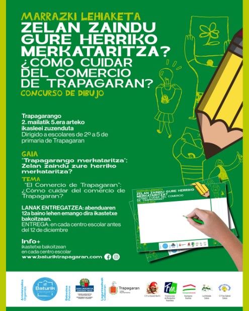 Iazko arrakasta handiaren ondoren, Baturik Trapagaran, herriko ikastetxeekin elkarlanean, gure herriko merkataritzari buruzko bigarren marrazki-lehiaketa antolatzen du.